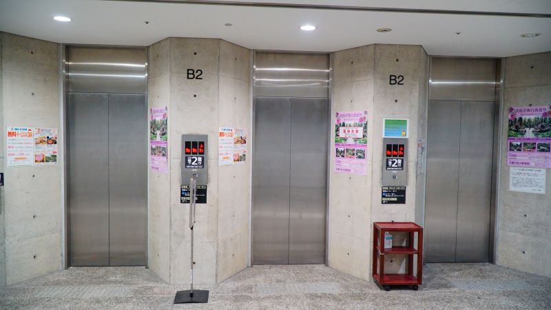こっちのエレベーターを使います。