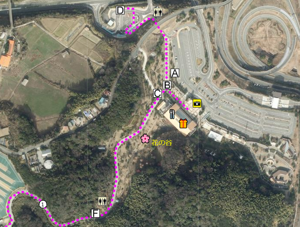 A=ニジゲンノモリ高速バス停