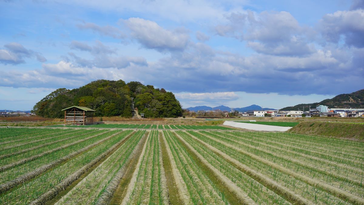陵墓の前は、玉ねぎ畑。