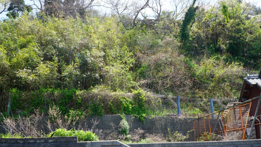 崖の右側が、おそらく竹林。