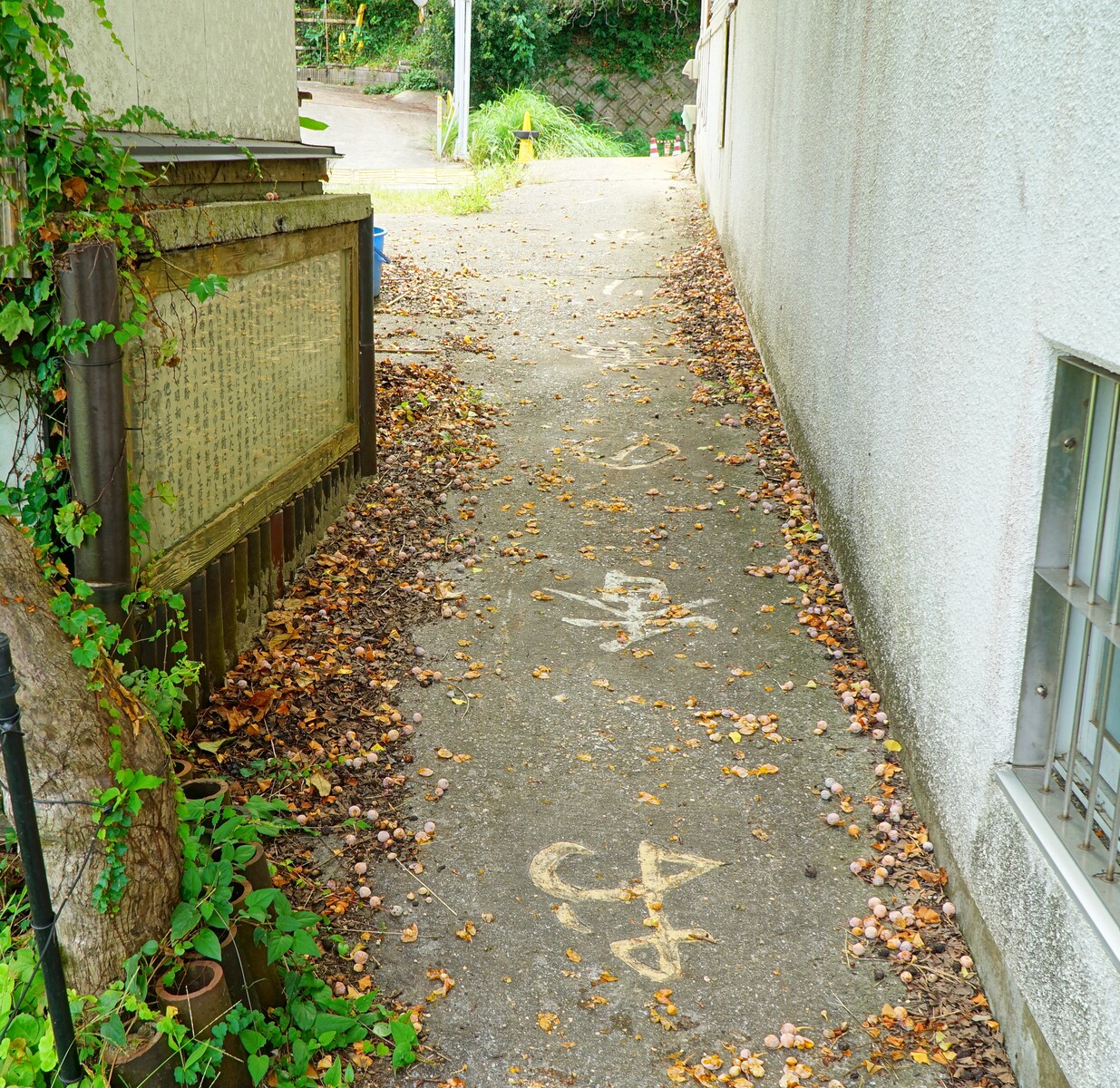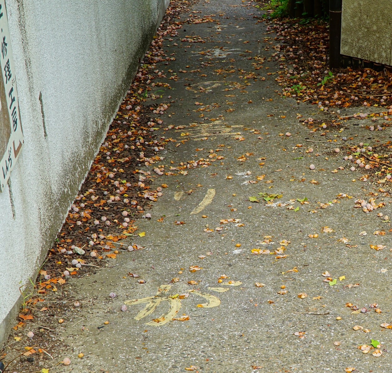 この路地の地面には…。
