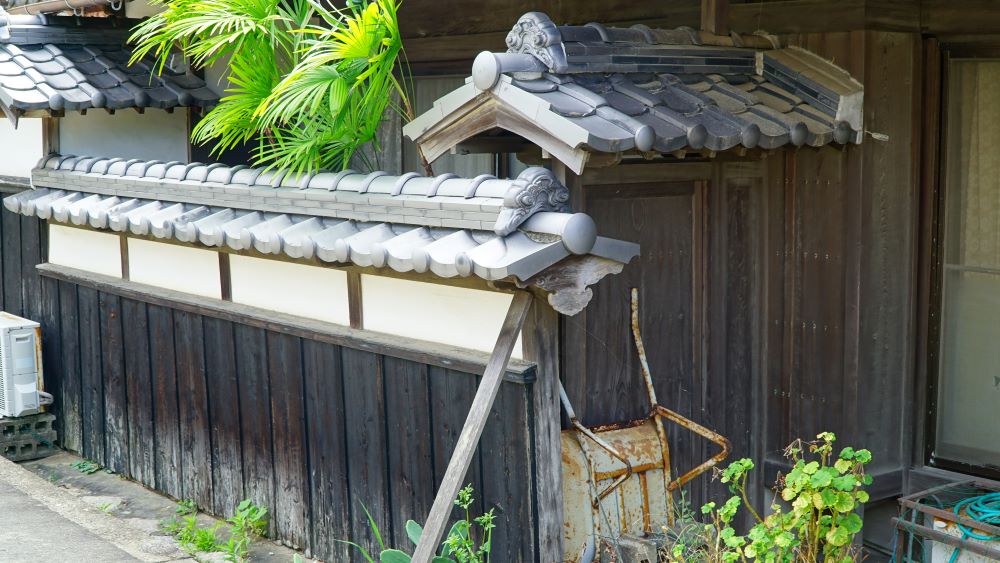 白壁造りの民家。