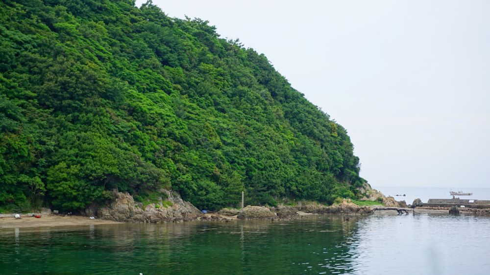 漁港西側の丘は 雁子岬 。