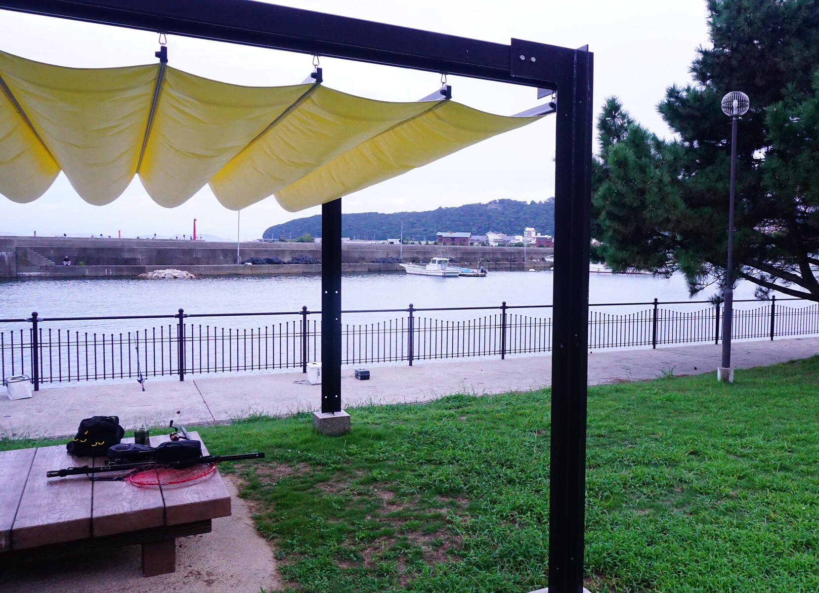 すぐ前が魚影の濃い洲本港、