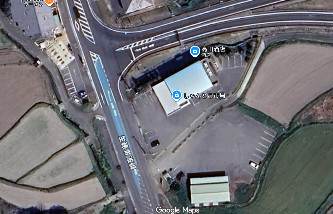 道路左側に、「しゃんとこ市場」。