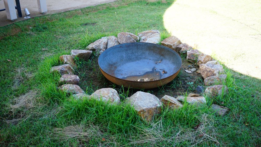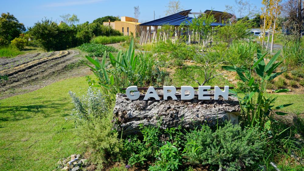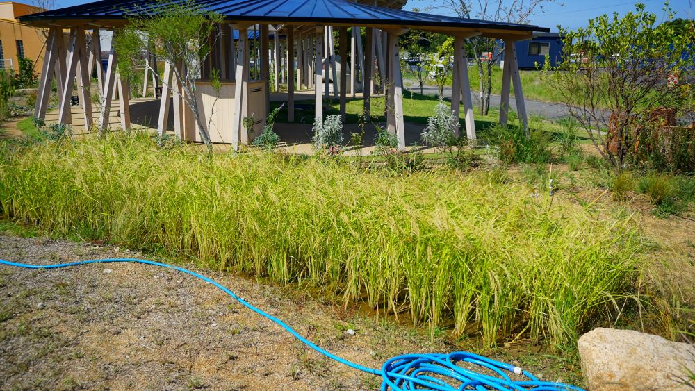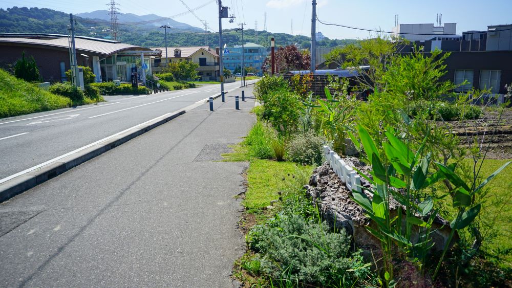 歩くと、小さなお庭があります。