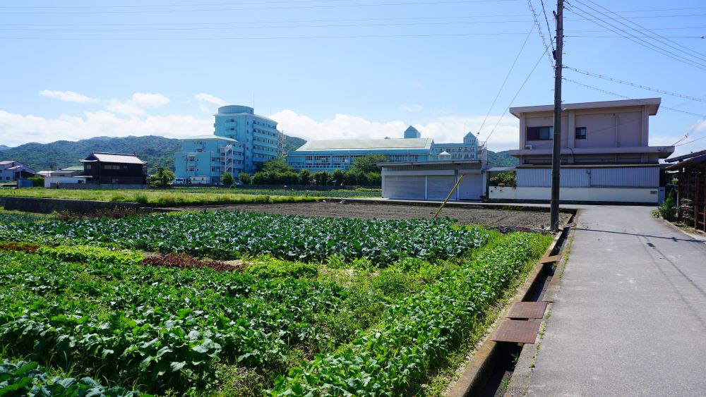 水色の建物、平成病院。
