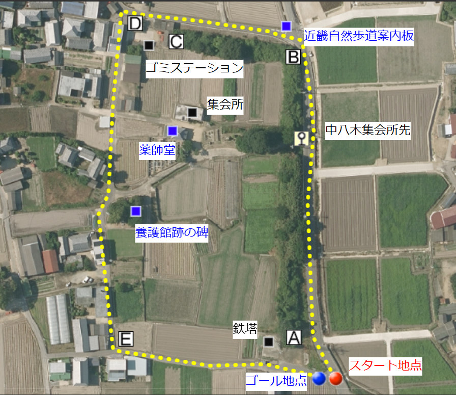 地図A地点からE地点方向。