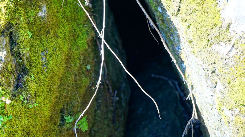 鍾乳洞へ流れ落ちてきます。