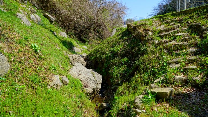 そこから道路左側の水路に